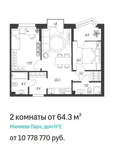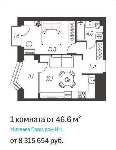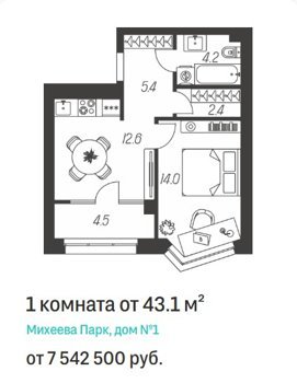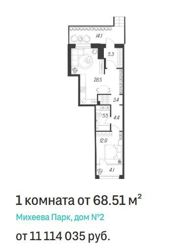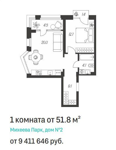 Площадь от 41.4 м2