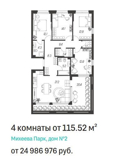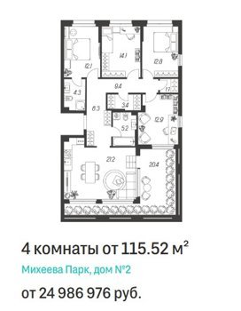 Площадь от 115.5 м2