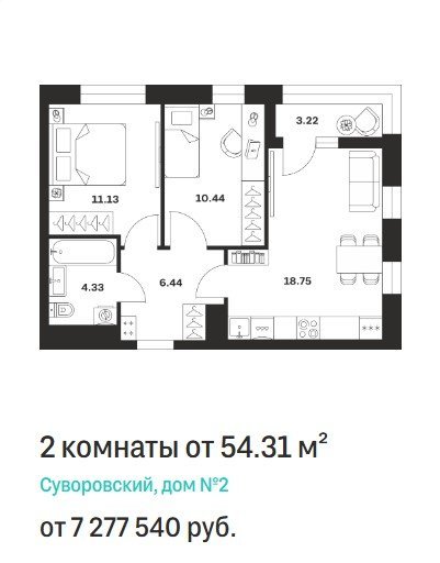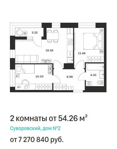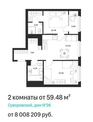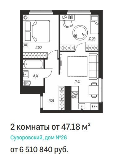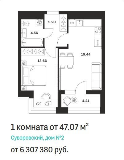 Площадь от 47.18 м2
