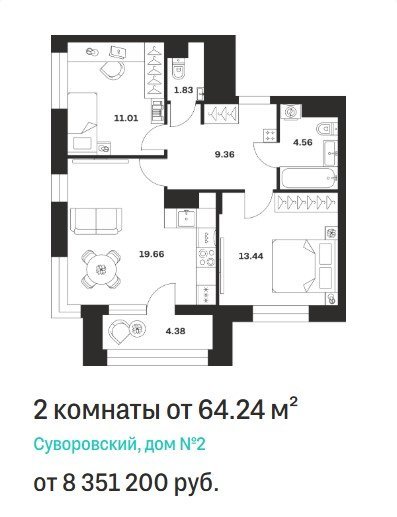Площадь от 41.45 м2