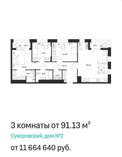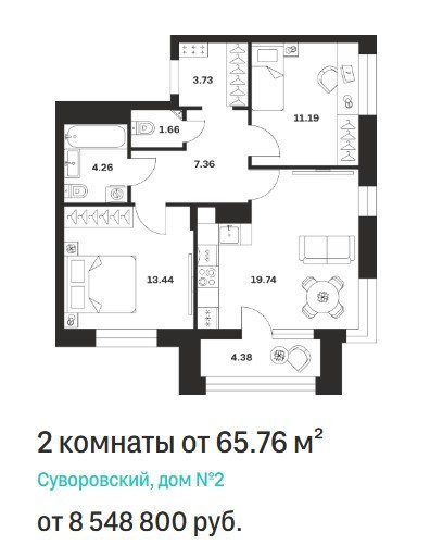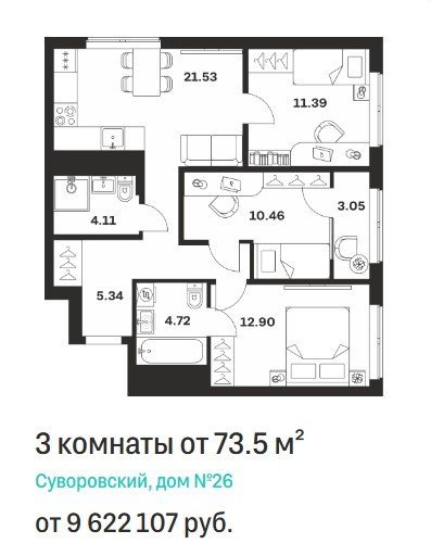 Площадь от 73.5 м2