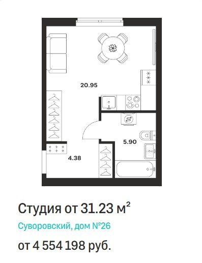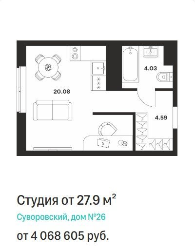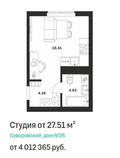 Площадь от 27.51 м2