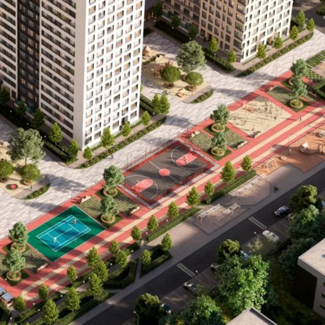 Уютный и безопасный двор закрыт от посторонних глаз. Проект благоустройства внутренней территории предполагает сделать двор любимым местом для прогулок, отдыха на свежем воздухе и занятий спортом для всех жителей комплекса.